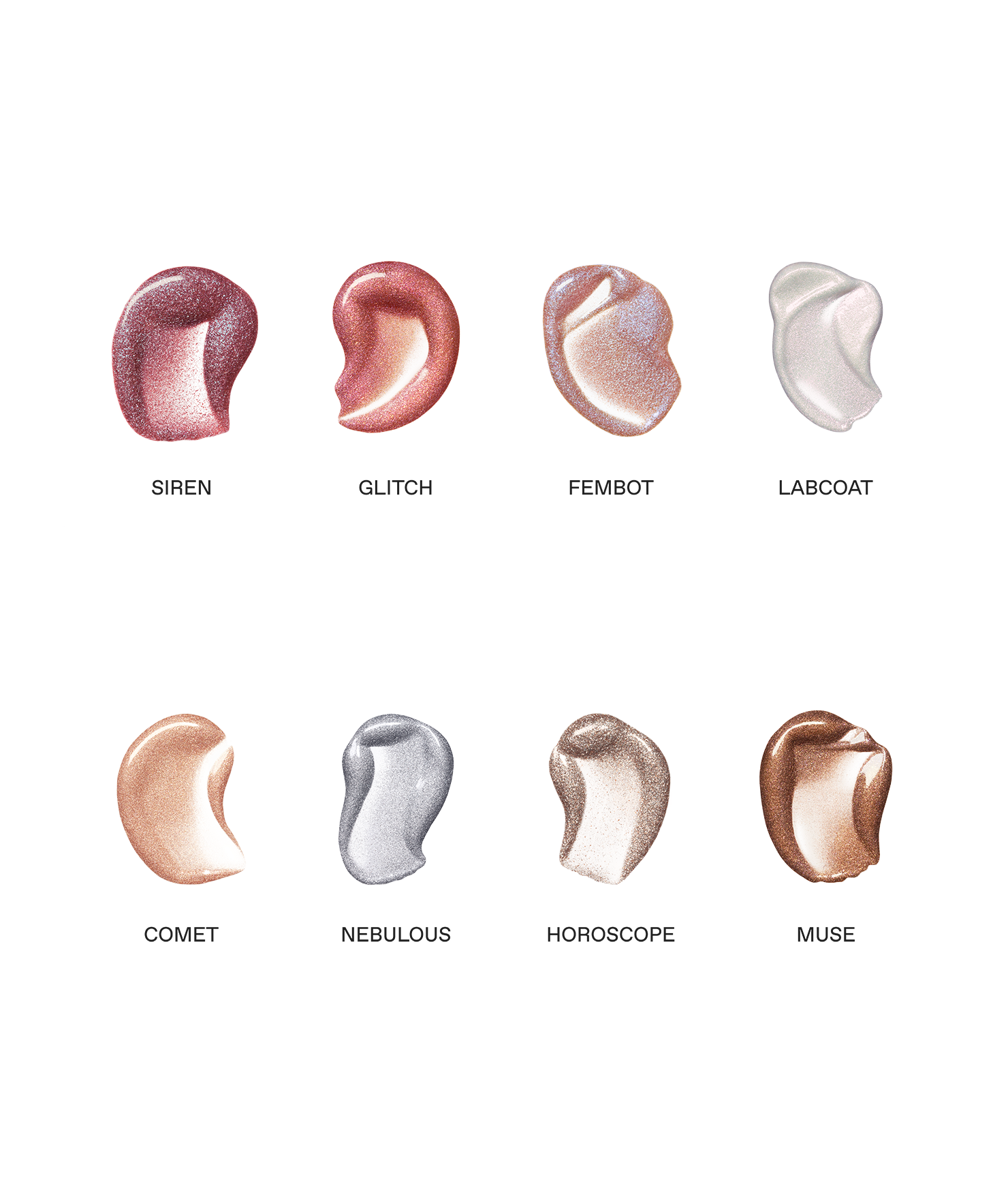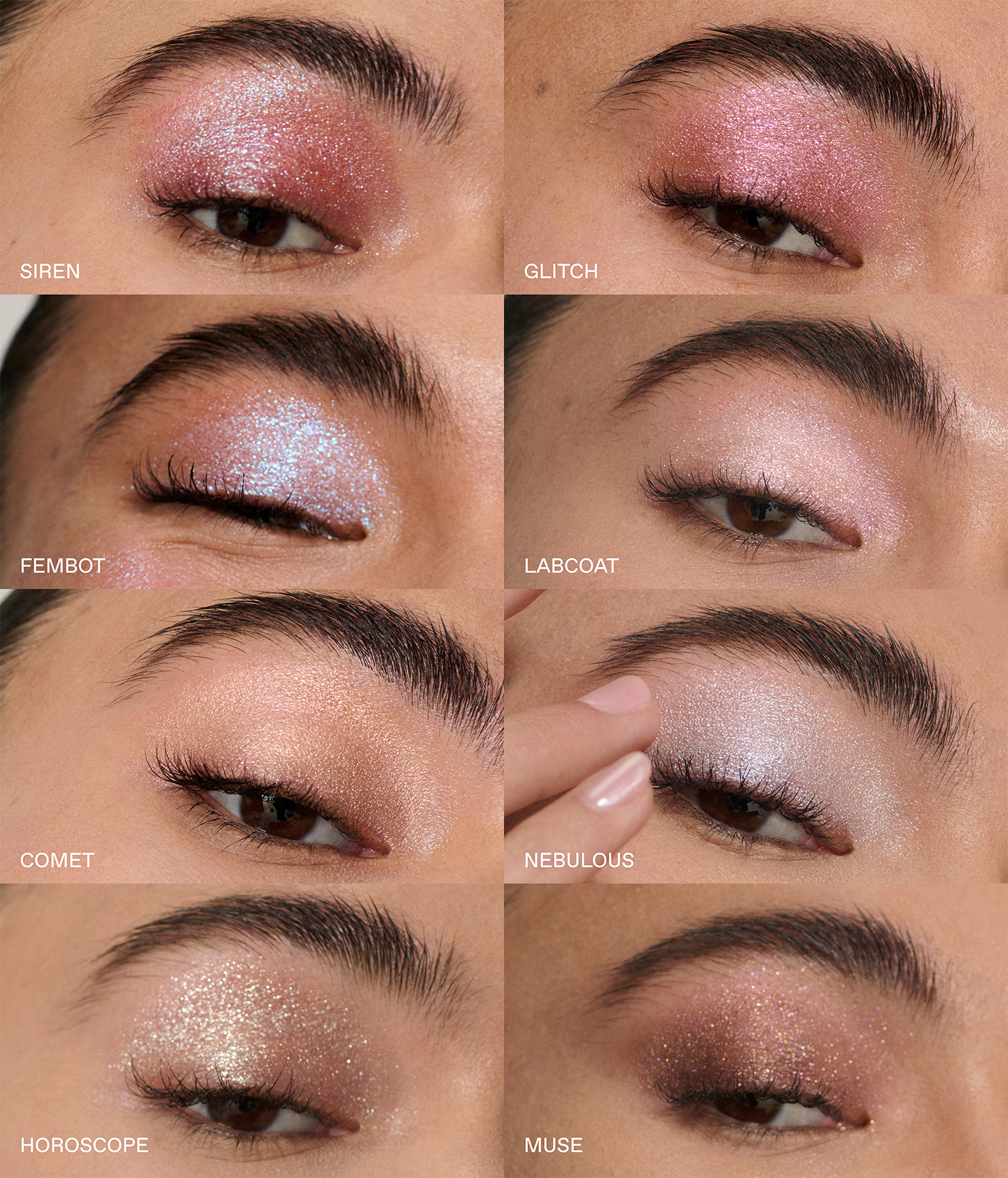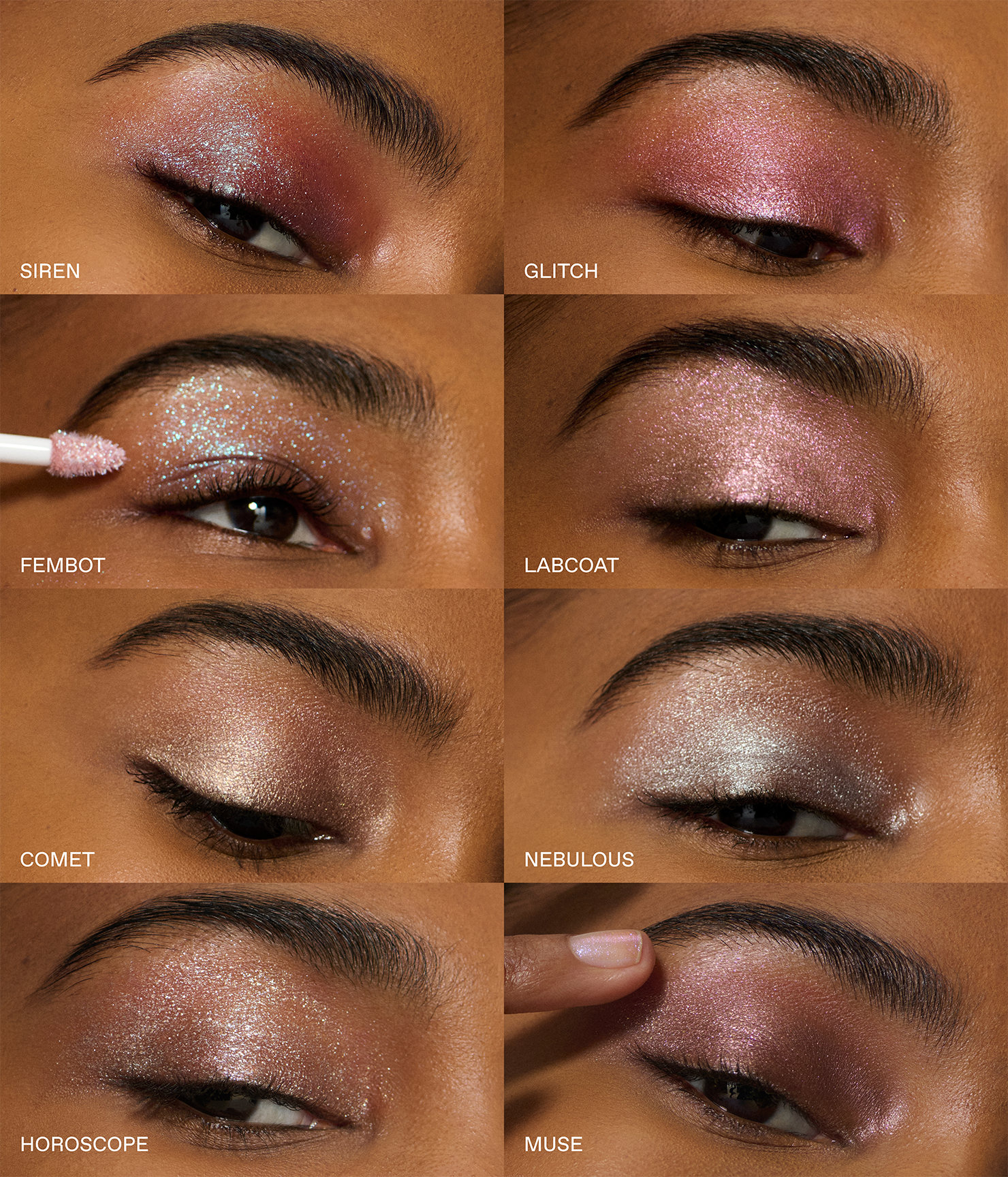 all 8 shades of our starlet lustrous liquid eyeshadows.