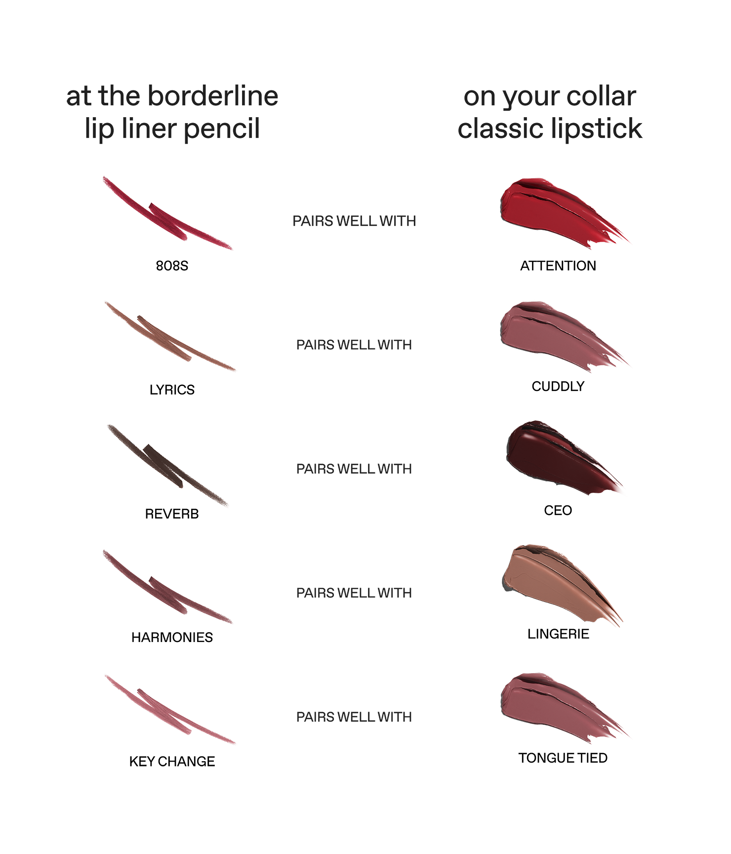 keep rogue lipstick in check with this easy-glide pencil that helps prevent bleeding and feathering while creating a fuller-looking appearance. perfectly coordinated to pair with both our matte liquid and classic cream lipsticks, this rich and creamy liner shapes the perfect border and can be worn all over for seamless, saturated color that won’t wander. plus, the built-in sharpener makes it easy to sharpen on the fly in no time.